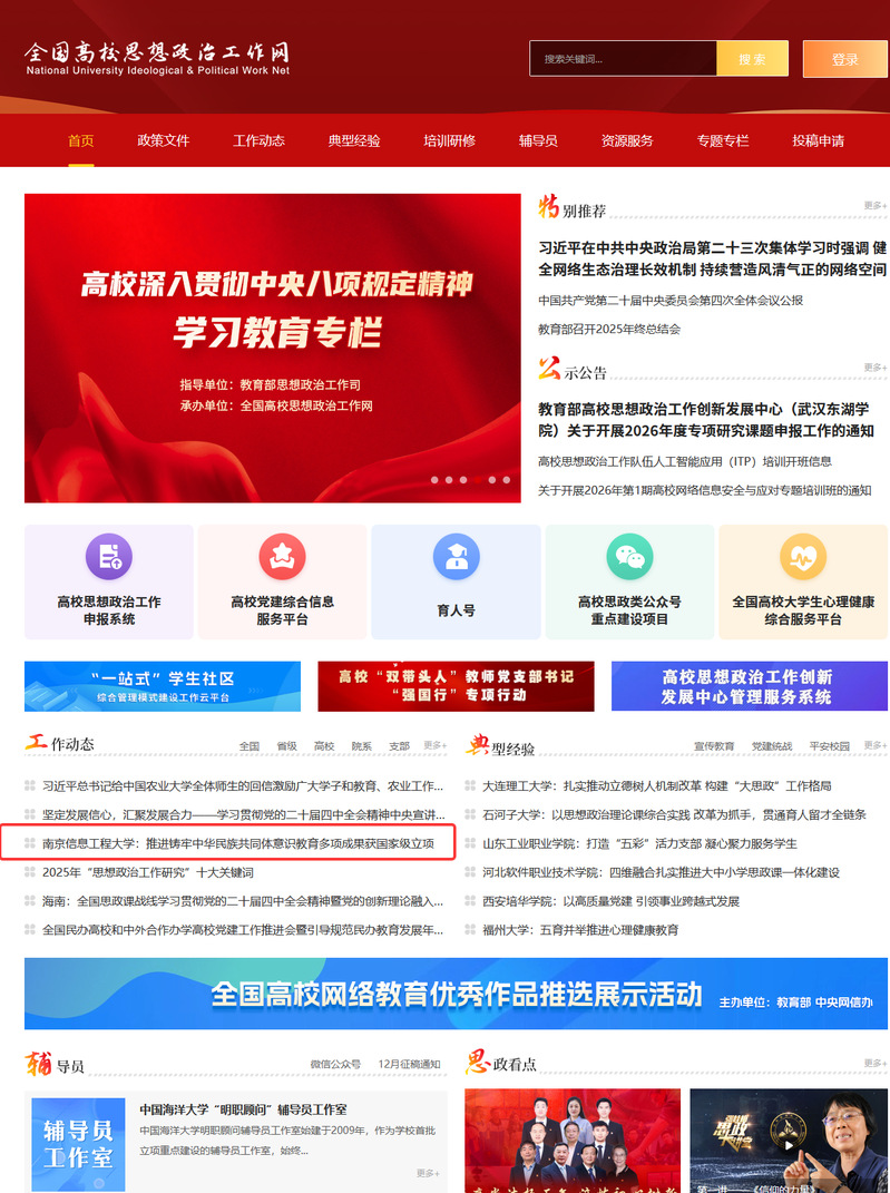 12月30日,全国高校思政工作网首页新闻《南京信息工程大学:推进铸牢中华民族共同体意...